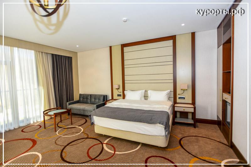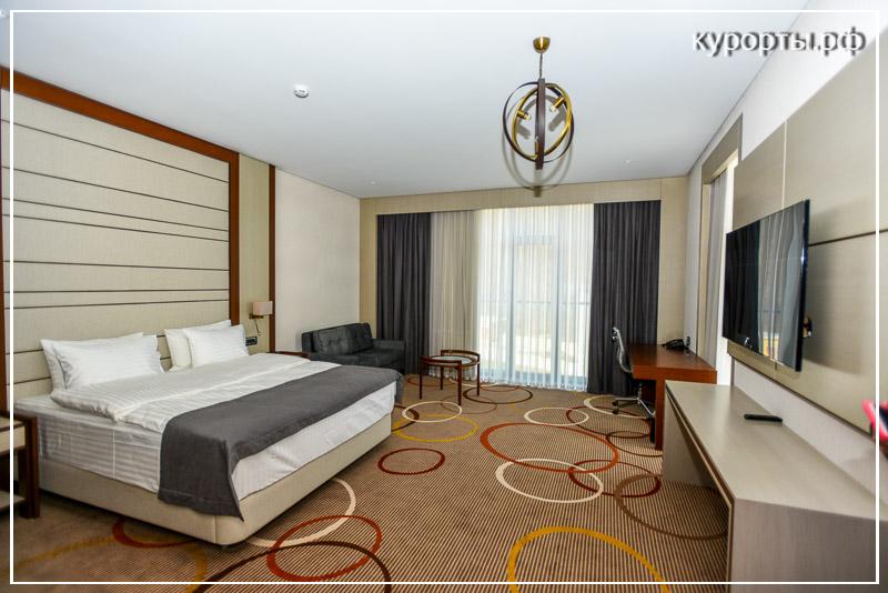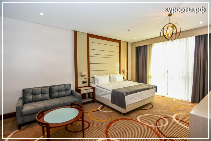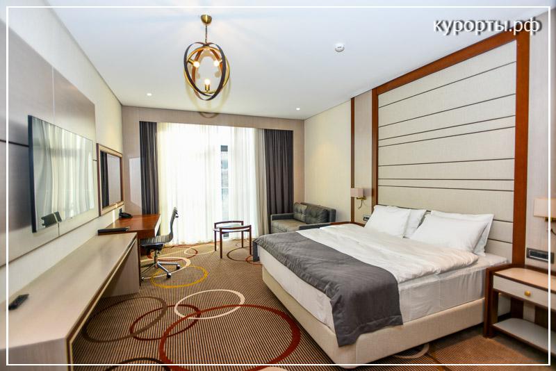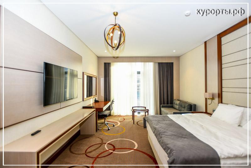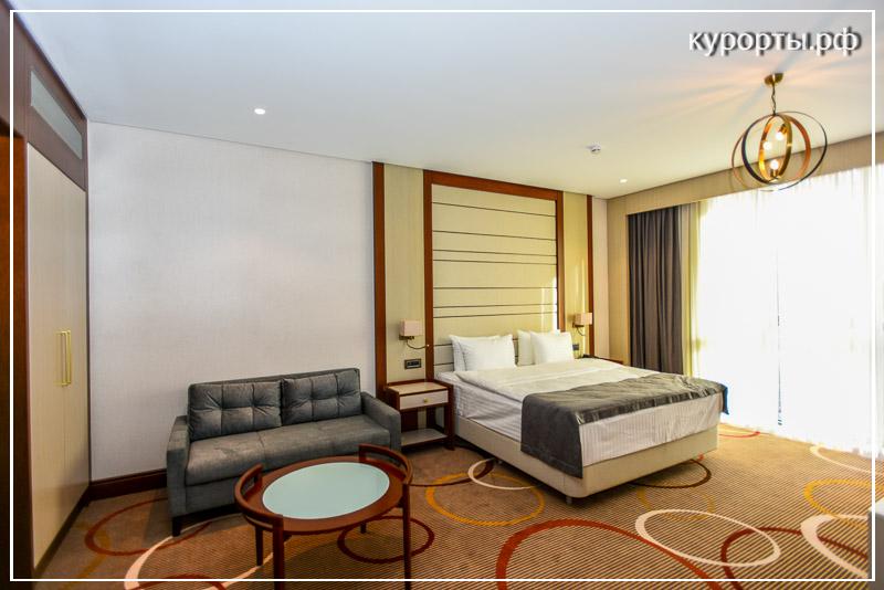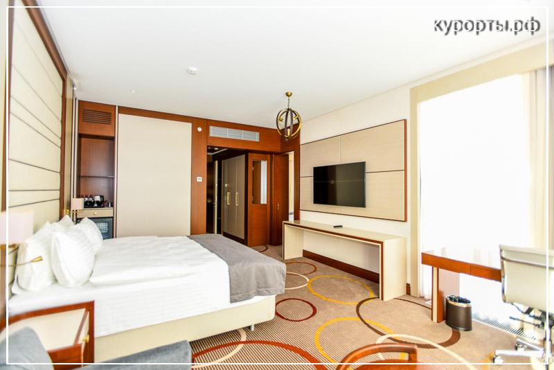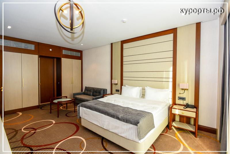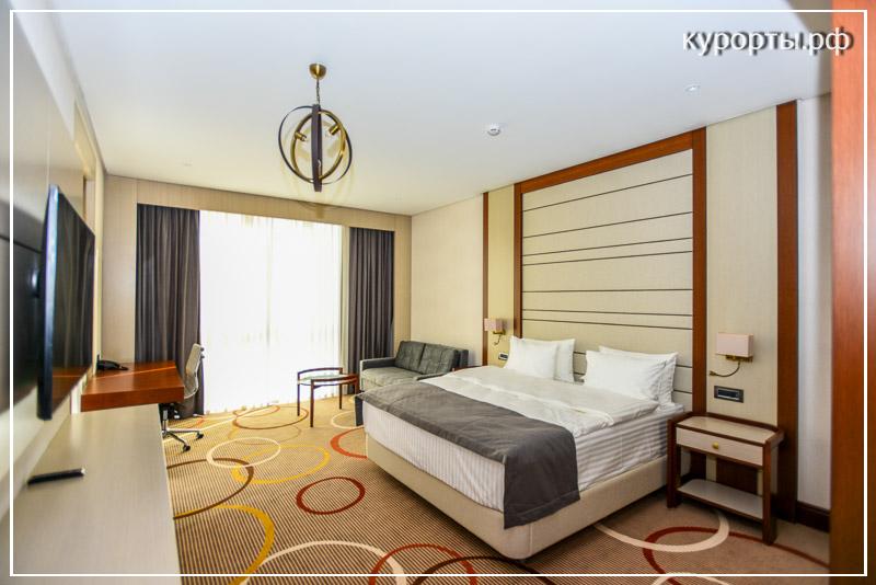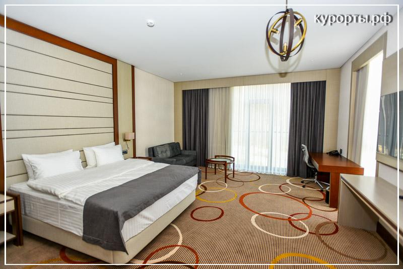 К услугам гостей доступны 200 номеров, среди которых комфортабельные одноместные и двухместные стандартные номера, номера студия, двухкомнатные номера различных категорий - Джуниор, Комфорт, Люкс и Семейные.