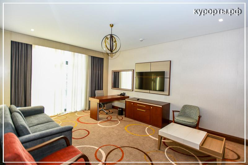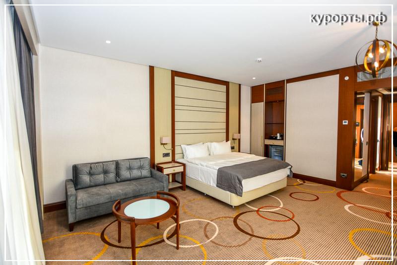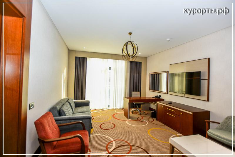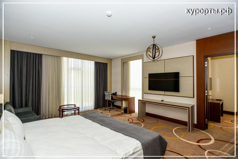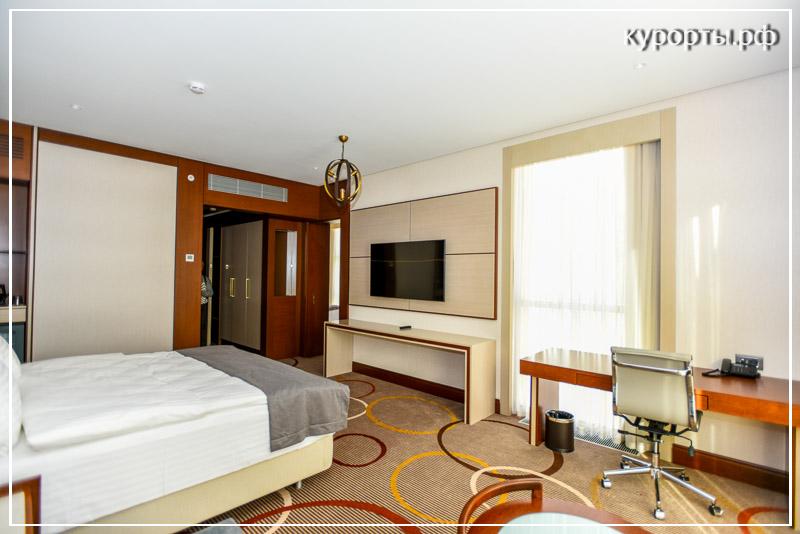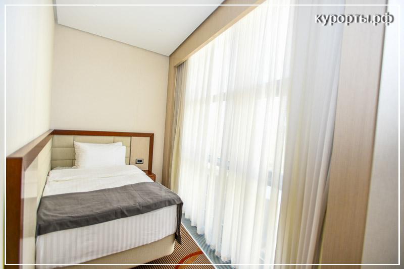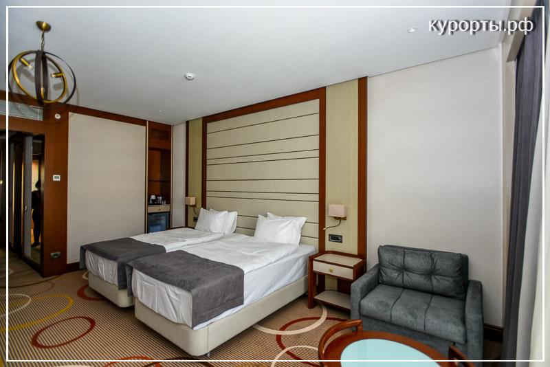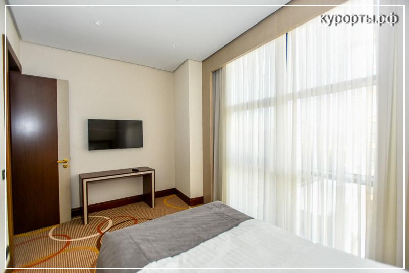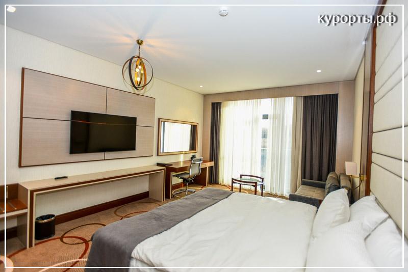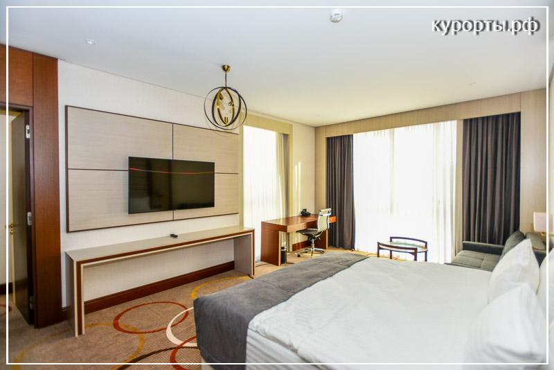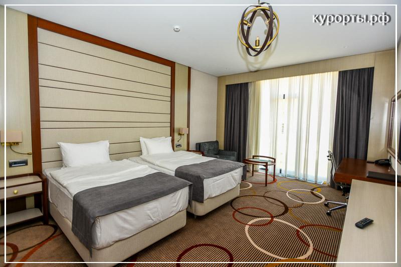 К услугам гостей доступны 200 номеров, среди которых комфортабельные одноместные и двухместные стандартные номера, номера студия, двухкомнатные номера различных категорий - Джуниор, Комфорт, Люкс и Семейные.