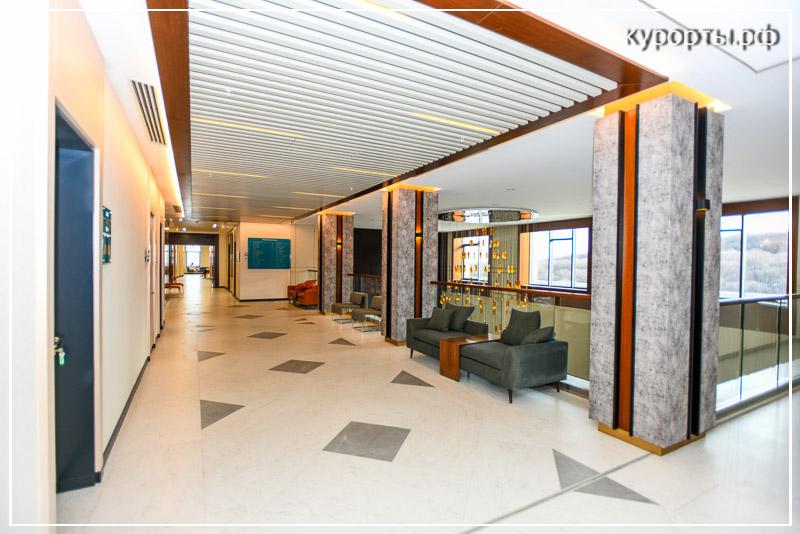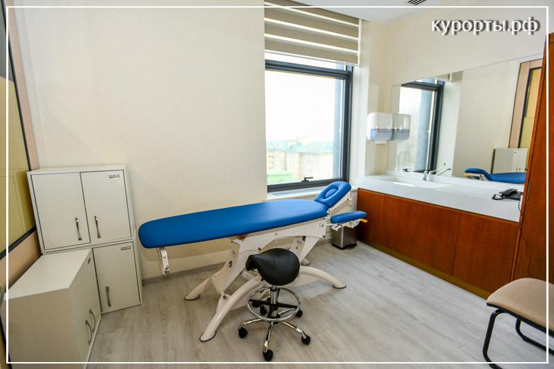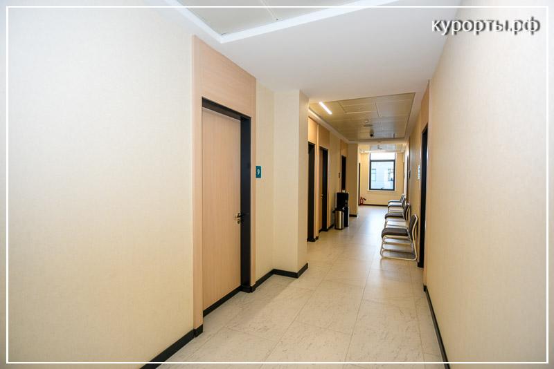 Лечебный корпус расположен на втором этаже, который соединяет 2 спальных корпуса. Гостям не придется менять этаж, что бы принять все процедуры. Лечебная база оборудована по последнему слову техники.